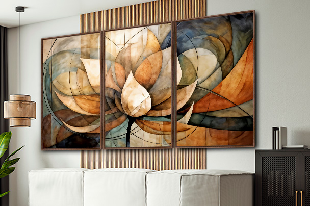 Quadros decorativos de tons neutros trazem sofisticação, enquanto cores vibrantes criam energia e movimento.