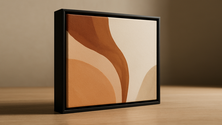Escolha entre a sofisticação da moldura flutuante com 4,5cm de espessura ou o impacto visual da tela decorativa com borda infinita com 3,6cm de espessura. Cada quadro é produzido com materiais nobres e acabamento minucioso, garantindo durabilidade, elegância e padrão de galeria internacional no ambiente.
